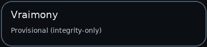 - Always pair with a short “Reality Audit” line: integrity-only (tamper-evident).